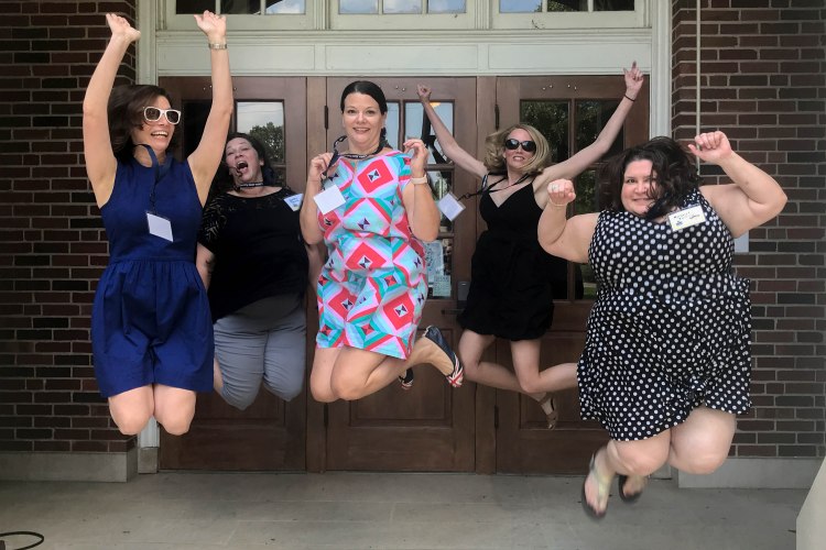 May 12: I walked the Pink Bra Run 5k with my birthday buddy Ann Frances on Saturday. Love this child so much. We had fun chatting about this and that the whole time. About an hour before the race, I decided I needed MOAR PINK so I (ahem) whipped up a quick circle skirt out of some cheap pink polyester I had. I mean, seriously, it’s made terribly, but it was fine for this, and it counts, right?