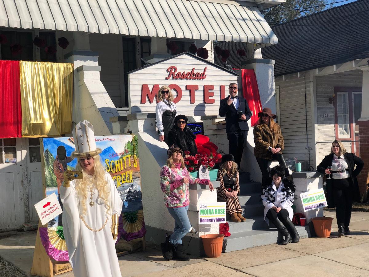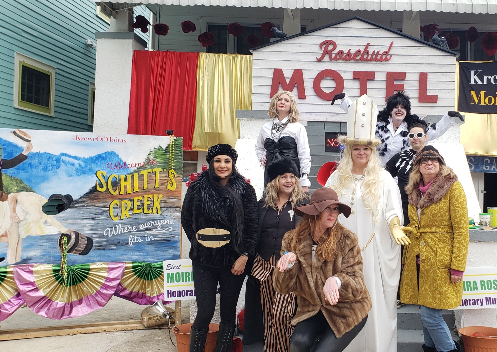 So we decided to do a Rosebud Motel house float! And on Mardi Gras day we’ll be wearing our Moira costumes. We even have special throws for the day (but those will remain top secret for now.)