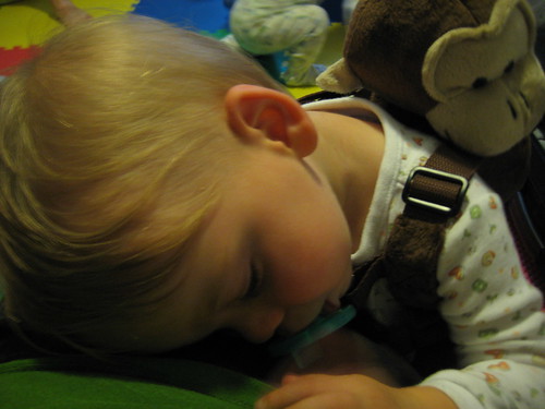 Got to the airport bright ‘n’ early with Oliver. Everything went smoothly, though I do wish I’d put him in the Bjorn to go through security. Folding the stroller was a pain, but some nice lady gave me a hand. Oliver was an angel on both flights. He cooed and smiled and charmed everyone. He ate on the takeoffs, so he didn’t seem to have any ear issues.
