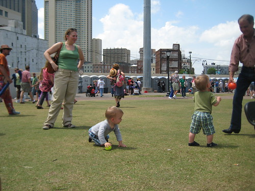 At French Quarter Fest, someone kindly retrieved the ball for Linus. Hee!