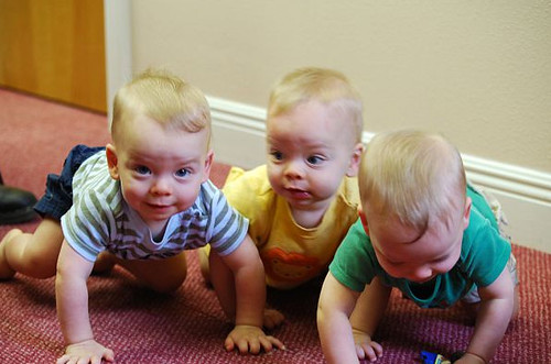 Again, not a bad idea, except that I can see this ending in disaster. Blindfolded and dizzy, I trip and fall on top of one of the triplets, or fall down the stairs. I fear I am not coordinated enough for this method.