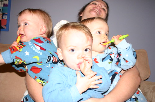 Speaking of last night, I let Auntie Steph do something she’s been dying to do, and I promised her she could do first…give the boys a tiny taste of ice cream. Predictably, they loved it, even though it was only vanilla, and not Peanut Butter & Chocolate from Baskin-Robbins.