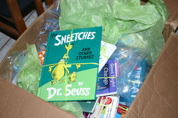 The box was completely full of children’s books. Full to the brim. Almost 100 books. These girls had gotten together and sent me their favorite books from their childhood or their own kids’. It was amazing, and there were so many books in there that I loved as a kid (or during my stint as a children’s bookseller at B&N.)