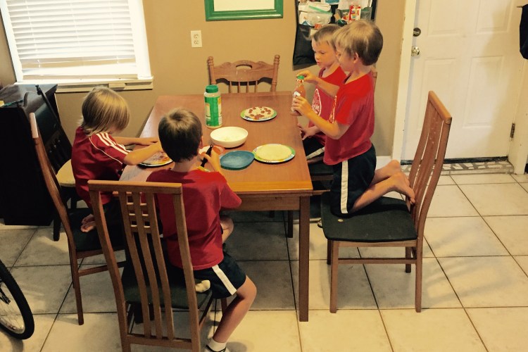 Went to John’s Pizza for dinner. Was delicious but hot. Like, my shirt was soaked with sweat. 🔥 But the pizza was fantastic. The boys were thrilled to have “foldable” pizza.