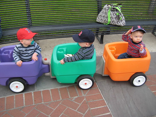 Our friends brought the boys some Red Sox caps. They were so cute. Linus kept his on all day, Oliver took his off after a little while, and I think Miles may be a Yankees fan, because this picture was taken in the split second he actually left it on: