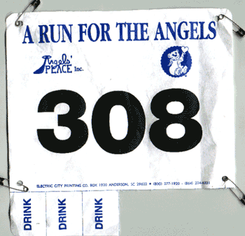 – Sometime after we passed the mile 18 line, Chris and I were running along, and I felt a very distinct “pop” in my left shoe. Sure enough, one of the blisters that I had picked up while walking around in the days before decided to commit suicide inside my shoe. Blech. It was the most disgusting feeling, and immediately, I was in excrutiating pain. Fortunately, immediately beside us were some (as you can see, very friendly) paramedics. They sat me down and took care of me (well, but a bandage on my toe, what else could they do? Chopping off the toe seemed like a good option to me at the time) and I was really, really worried that I’d either have to give up (no question) or limp to the finish line. Fortunately, I was able to ignore the pain after a little while, and soon enough, it went away completely. Who knows how. I was expecting to take my shoes off afterwards and find a lake of blood inside my shoe, but there was never any. Whew! I hate blood!