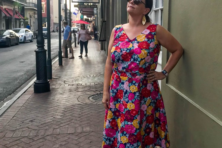 The fit on the right is more like how it should be. I also raised the waistband an inch (well, I lowered it 3″ the first time I made it, but only 2″ the second time) and went down a size in the bodice, but up a cup size (Cashmerette patterns have different bust sizes, which is awesome.)