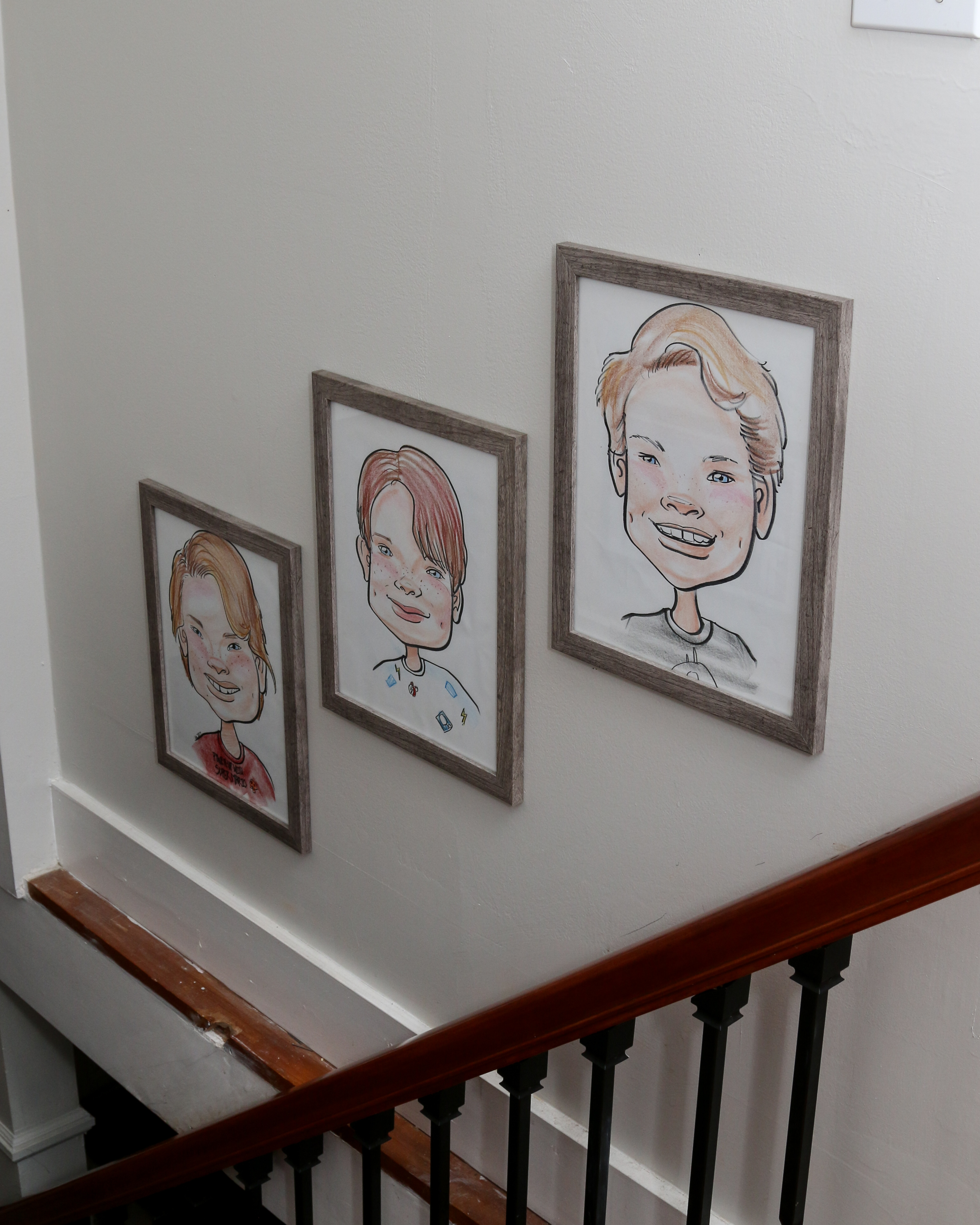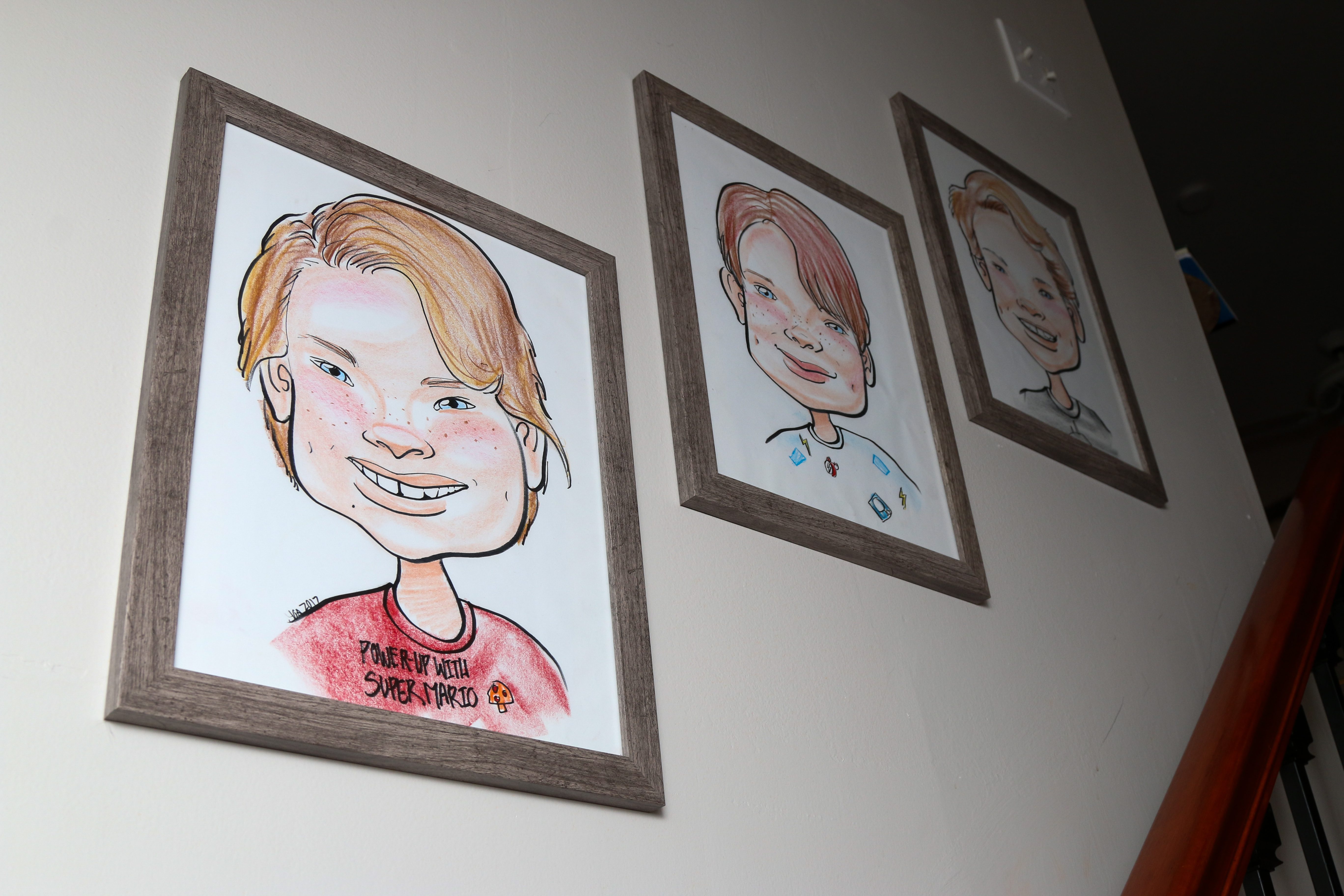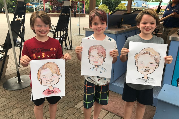 When we were in Virginia, we spent a very very fun day at the King’s Dominion theme park. I told the boys they could get one souvenir each, and after passing a caricature artist, Oliver declared that’s what he wanted. So at the end of the day, just before we left, we stopped and Oliver sat for his portrait.