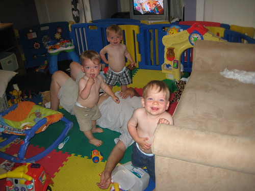 I love this picture of all the babies. You can see Linus pulling on Steph’s nannie’s shirt, which makes me laugh. They will climb up anything, anyone, everything!