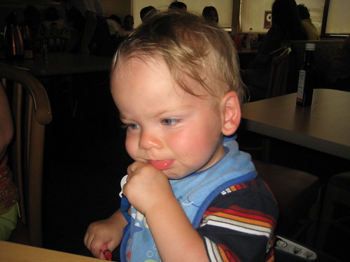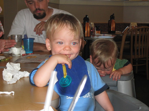 After all of the fun at the zoo, I picked up George at the house and we headed to his grandpa’s, so he could see the boys. They were very sweet to their great-grandpa. But I know what Oliver’s thinking here. “Glasses! I want the glasses! Hand ’em over, Gramps!”