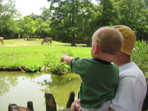 We got there right before noon, so after a little while, we headed to a grassy area, spread out some blankets, and let the babies crawl around while we ate. The boys had never been on grass before, but they seemed to like it. Steph’s babies were reluctant to get on it. Pretty funny. They’d crawl to the edge of the blanket and tentatively brush the grass with their little hands. Eventually, they gave in, thanks to the undeniable tempations of dead leaves and sticks. Mmmm, leaves. Yum. (Why can’t I get them to eat finger foods, but they will eat leaves? Why?) Post-lunch, we went and looked at some more animals.